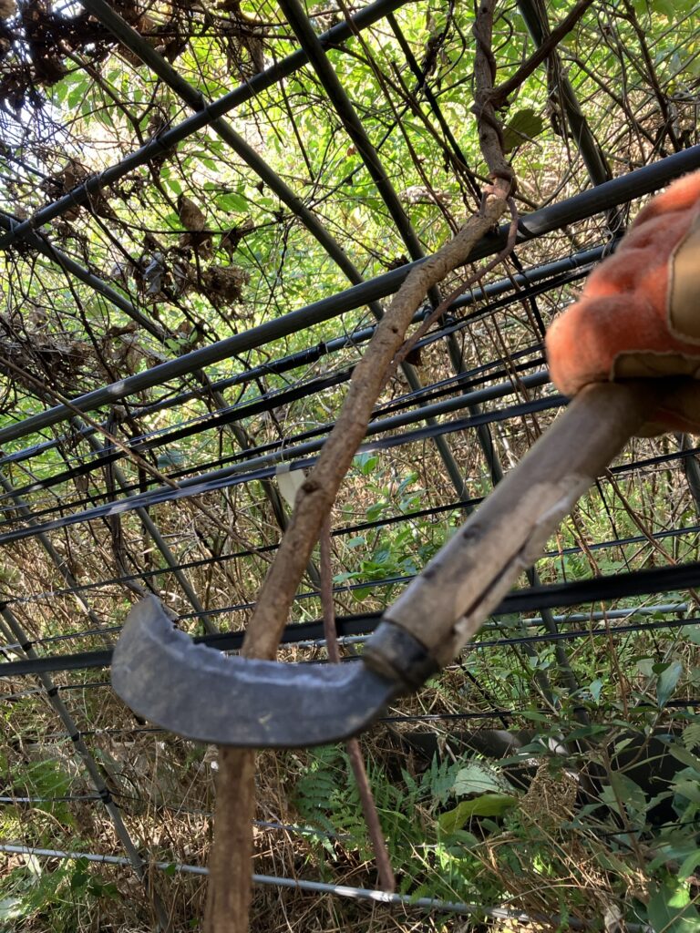 続いて、厄介なのがハウスに張り巡らされた蔓。