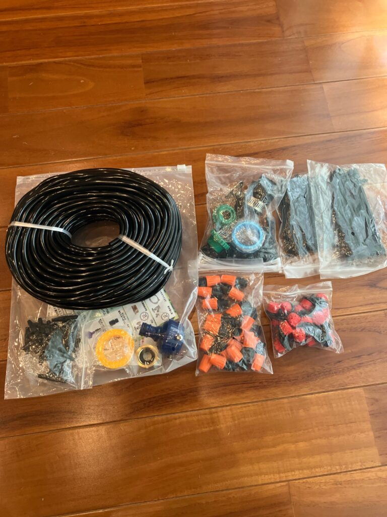 長いホースと、無数のドリップノズル(水滴を垂らすパーツ)。