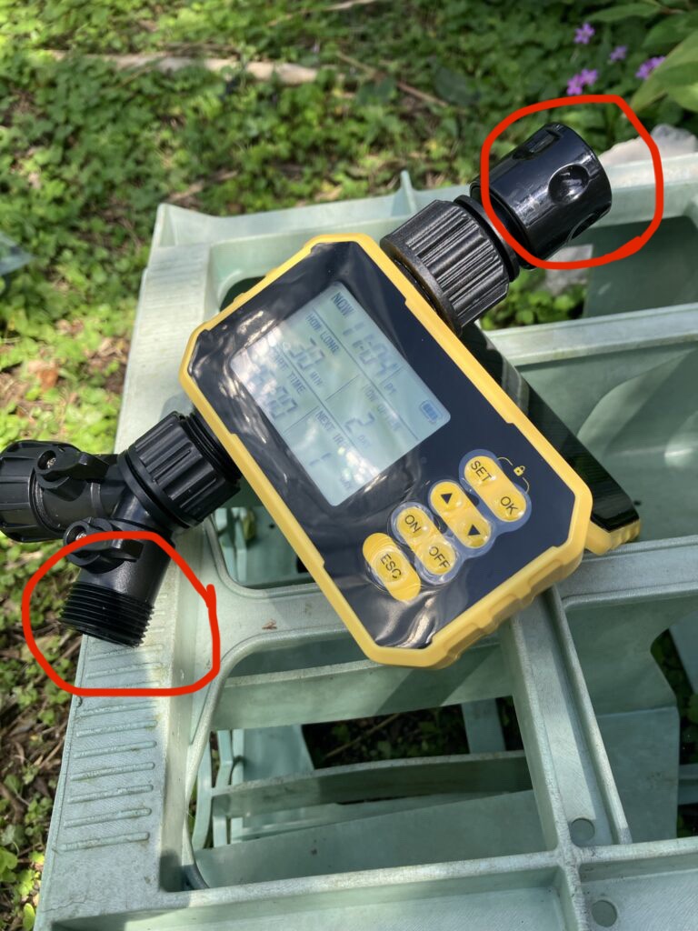 あとは、太いホースと水やりキットを繋ぐための「アタッチメント」さえあれば完成です。